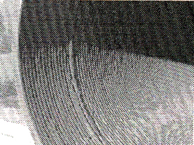 Carbide overlay plate. The overlay is deposited perpendicular to the flow of